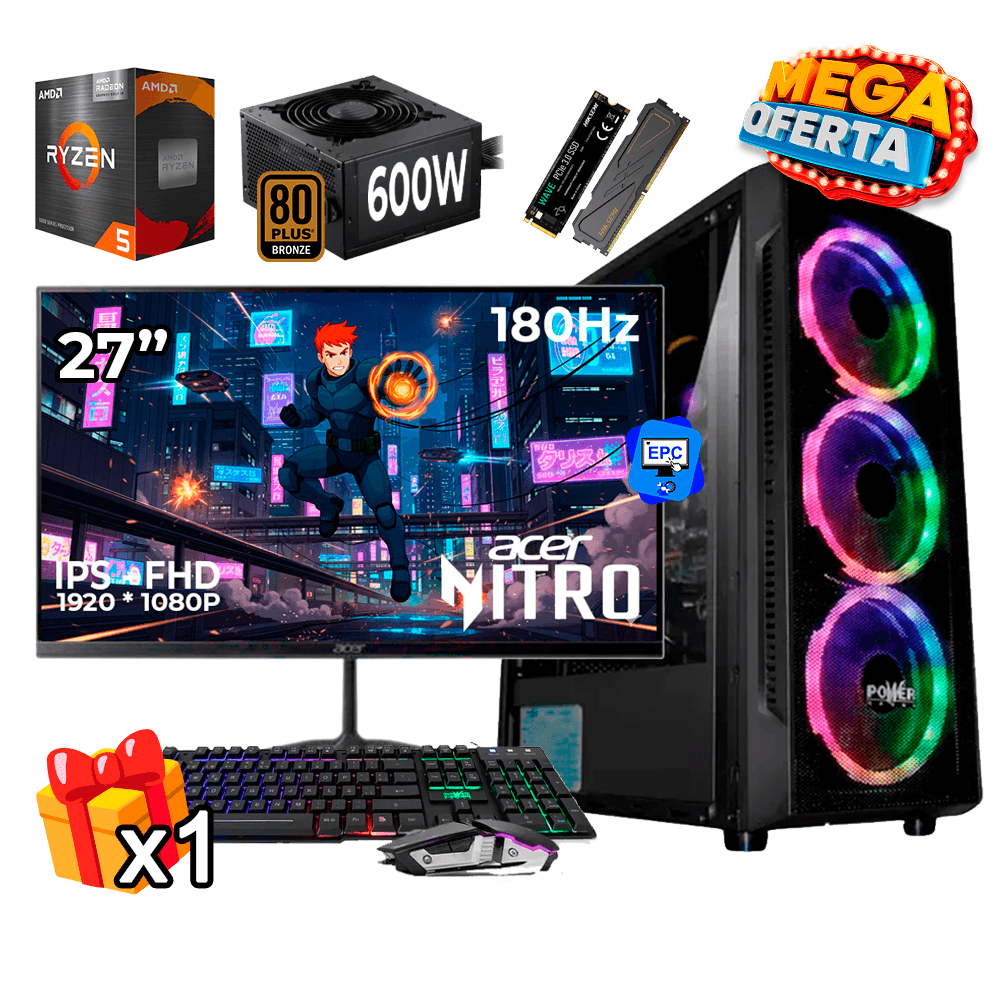 PC Gamer AMD Ryzen 5 5600GT + 16GB RAM DDR4 + 512GB SSD + MONITOR 27P + 600W 80 PLUS BRO P.GR56162SKE-27