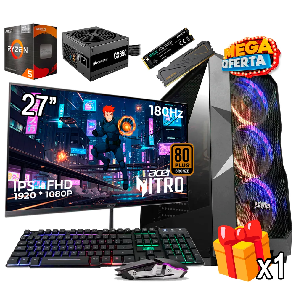 PC Gamer AMD Ryzen 5 8500G + 16GB RAM DDR5 + 1TB SSD + 600W 80+ + MONITOR GAMER 27 PULGADAS