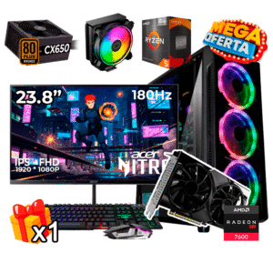 PC Gamer AMD Ryzen 5 5600GT + RX 7600 8GB + 16GB RAM DDR4 + 512GB SSD + 650W 80 PLUS BRO + MONITOR 23.8P + HALO 212 P.GR56162SKE-HALORX760023.8