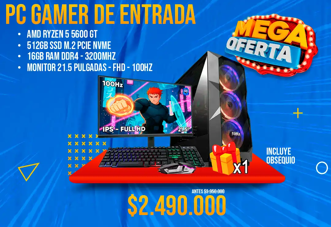 PC Gamer AMD Ryzen 5 5600GT + 16GB RAM DDR4 + 512GB SSD + MONITOR 21.5 PULGADAS